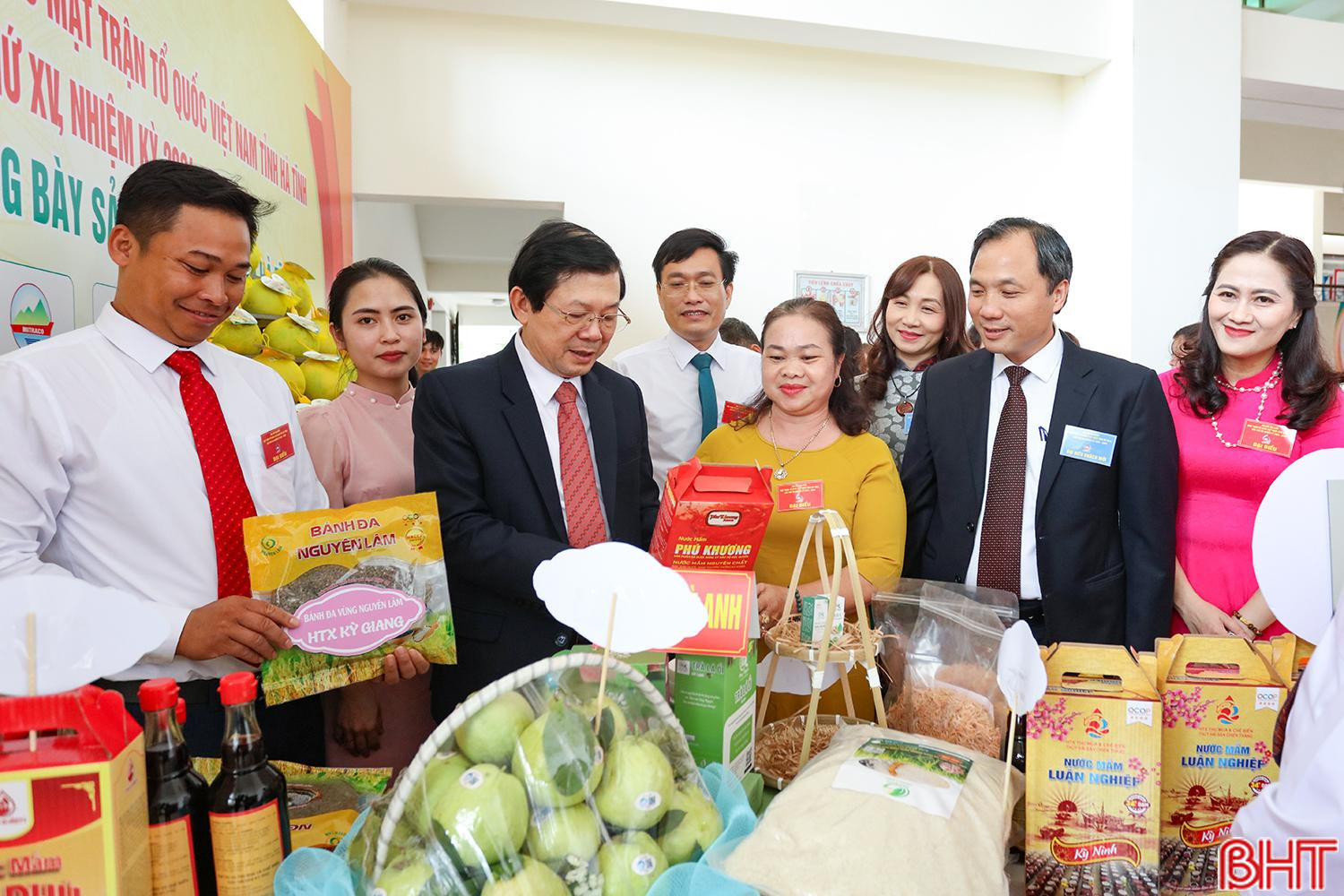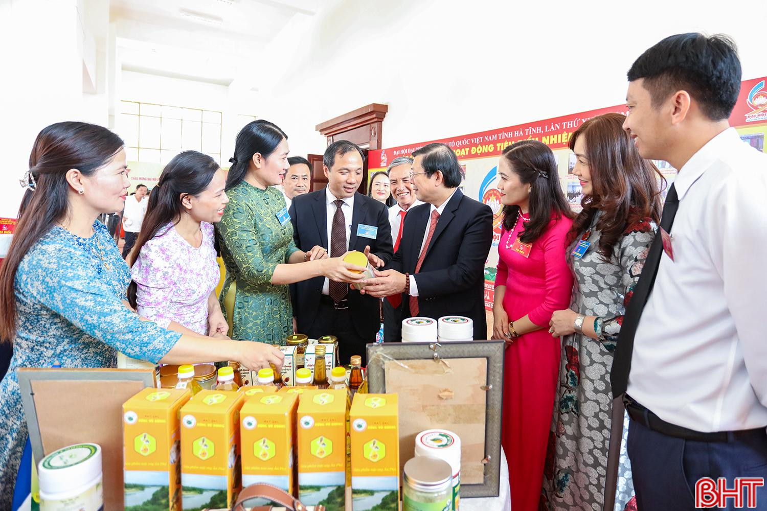 Đại biểu bày tỏ sự ấn tượng với các sản phẩm đặc trưng của Hà Tĩnh được trưng bày bên lề đại hội.
