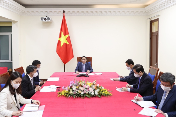 Tại cuộc điện đàm, Thủ tướng Chính phủ Phạm Minh Chính cảm ơn, đánh giá cao Tập đoàn Pfizer và cá nhân Ngài Chủ tịch Pfizer thời gian qua đã phối hợp hiệu quả với các cơ quan của Việt Nam để hoàn thành cung ứng sớm và đầy đủ 51 triệu liều vaccine phòng COVID-19 cho Việt Nam theo đề nghị của Việt Nam tại cuộc điện đàm với Thủ tướng ngày 20/8/2021.
