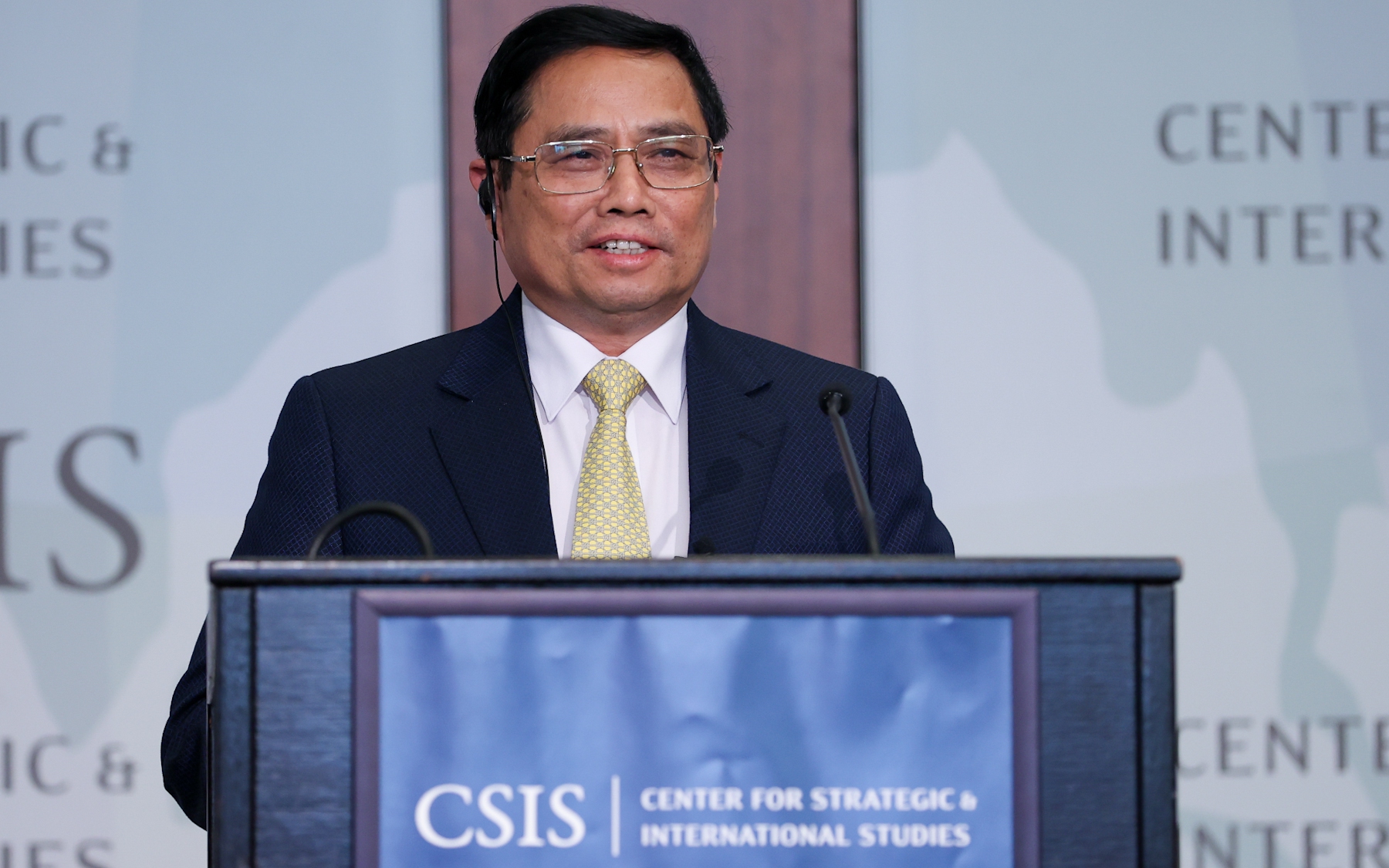 Thủ tướng Phạm Minh Chính phát biểu tại Trung tâm Nghiên cứu Chiến lược và Quốc tế Hoa Kỳ (CSIS), ngày 11/5 (giờ địa phương) - Ảnh: VGP/Nhật Bắc
