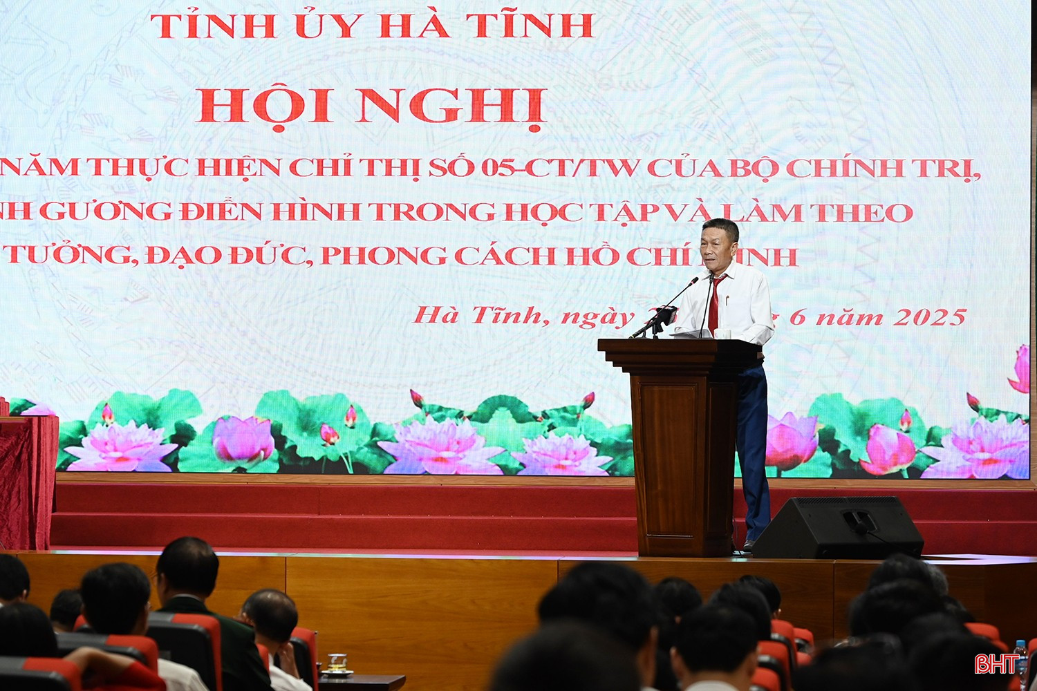 Chiều 25/6, Ban Thường vụ Tỉnh ủy Hà Tĩnh tổ chức hội nghị tổng kết 10 năm thực hiện Chỉ thị số 05-CT/TW của Bộ Chính trị về đẩy mạnh học tập và làm theo tư tưởng, đạo đức, phong cách Hồ Chí Minh và vinh danh gương điển hình tiên tiến, trao giải thưởng sáng tác, quảng bá các tác phẩm về Hồ Chí Minh.