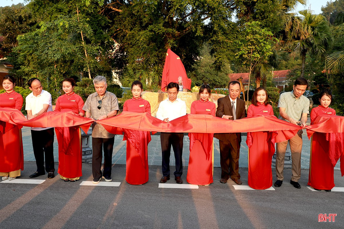 Phó Bí thư Thường trực Tỉnh ủy Trần Thế Dũng và các đại biểu cắt băng khánh thành tượng Đại danh y Lê Hữu Trác tại Khu du lịch sinh thái Hải Thượng.