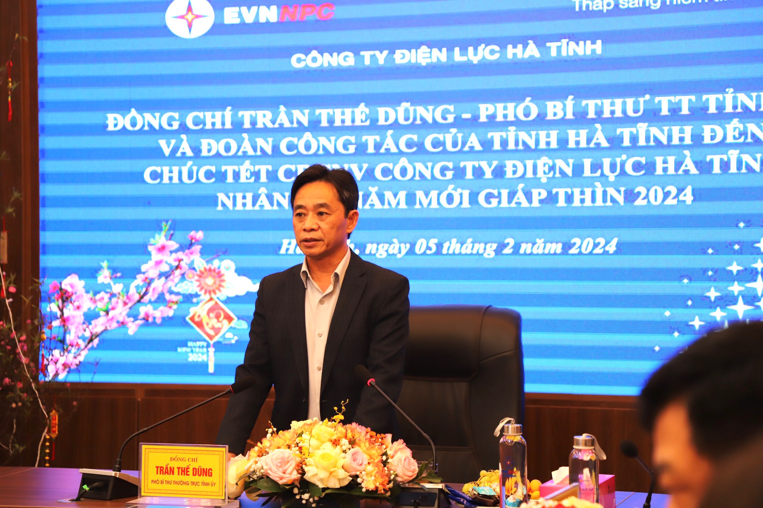 Nhân dịp Tết nguyên đán Giáp Thìn 2024, đồng chí Trần Thế Dũng - Phó Bí thư Thường trực Tỉnh ủy đã đến thăm hỏi, động viên, chúc Tết CBCNV Công ty Điện lực Hà Tĩnh.