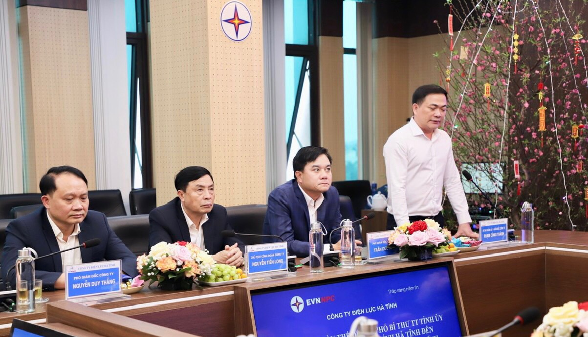 Thay mặt CBCNV, ông Phạm Công Thành - Bí thư Đảng ủy, Giám đốc Công ty bày tỏ niềm vui mừng, phấn khởi trước sự quan tâm, thăm hỏi, động viên của các đồng chí lãnh đạo tỉnh dành cho CBCNV Công ty, nhất là lực lượng lao động tham gia trực Tết nguyên đán. Gửi lời cảm ơn sâu sắc và tiếp thu ý kiến chỉ đạo của đồng chí Phó Bí thư Thường trực Tỉnh ủy, Giám đốc Công ty Điện lực Hà Tĩnh hứa sẽ không ngừng phấn đấu tại ra nhiều đột phá trong công tác chỉ đạo, điều hành, đảm bảo phục vụ cấp điện an toàn, liên tục, ổn định phục vụ nhân dân, xứng đáng với sự tin tưởng của các cấp lãnh đạo, chính quyền địa phương và sự tin yêu của khách hàng. Báo cáo với đoàn công tác, ông Phạm Công Thành cho biết đơn vị đã chuẩn bị kỹ lưỡng các phương án cấp điện trong dịp Tết, đảm bảo duy trì nguồn điện an toàn, ổn định phục vụ nhân dân đón xuân vui vẻ, bình an.