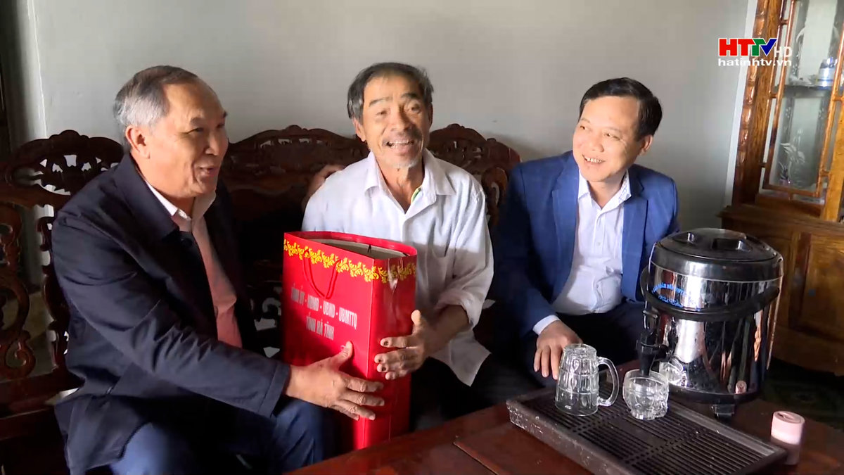 Ông Võ Hồng Hải, Trưởng ban Tổ chức Tỉnh ủy Hà Tĩnh tặng quà cho người có công trong dịp Tết Ất Tỵ 2025 (Ảnh HTTV)