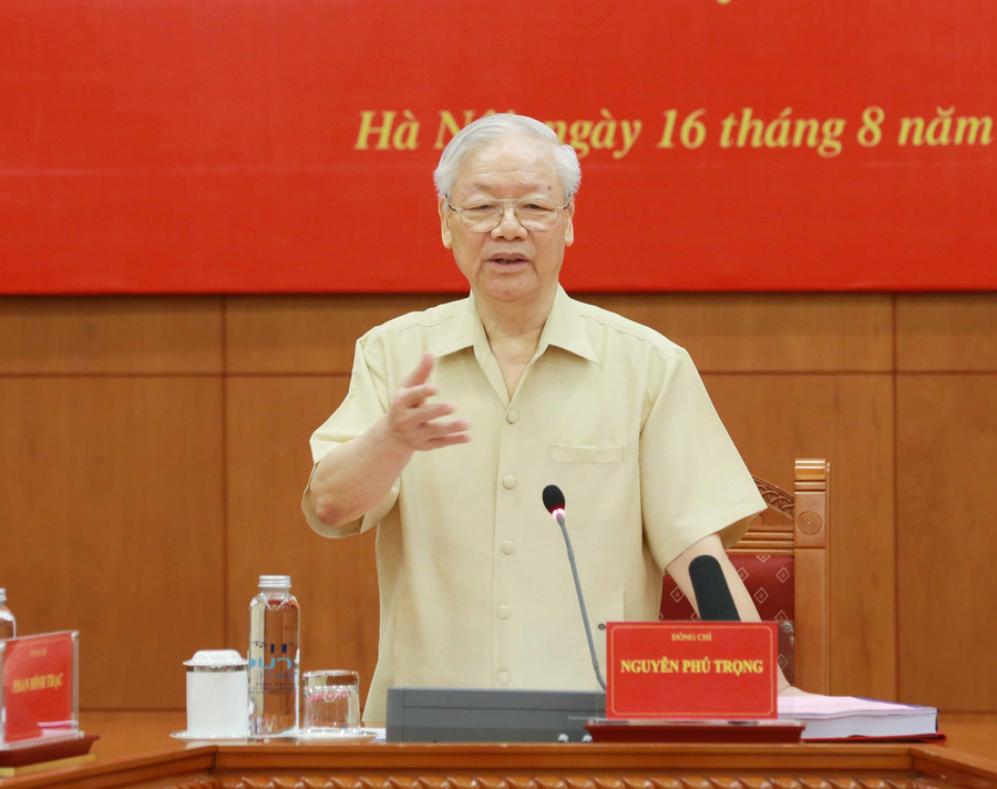 Tổng Bí thư Nguyễn Phú Trọng chủ trì Phiên họp thứ 24 Ban Chỉ đạo Trung ương về phòng, chống tham nhũng, tiêu cực ngày 16/8/2023. Ảnh: TTXVN