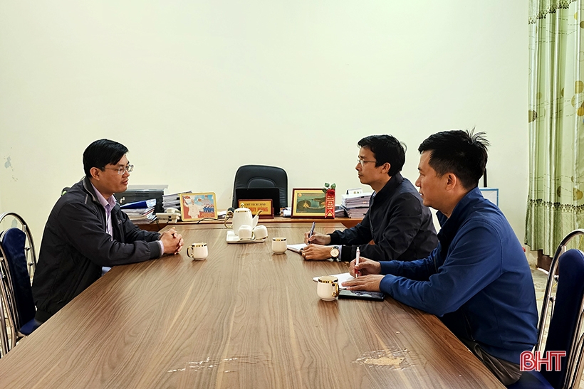Ông Hà Huy Hùng - Chủ tịch UBND xã Cẩm Mỹ trao đổi với phóng viên Báo Hà Tĩnh về tình hình dư luận trong nhân dân thôn Mỹ Yên.