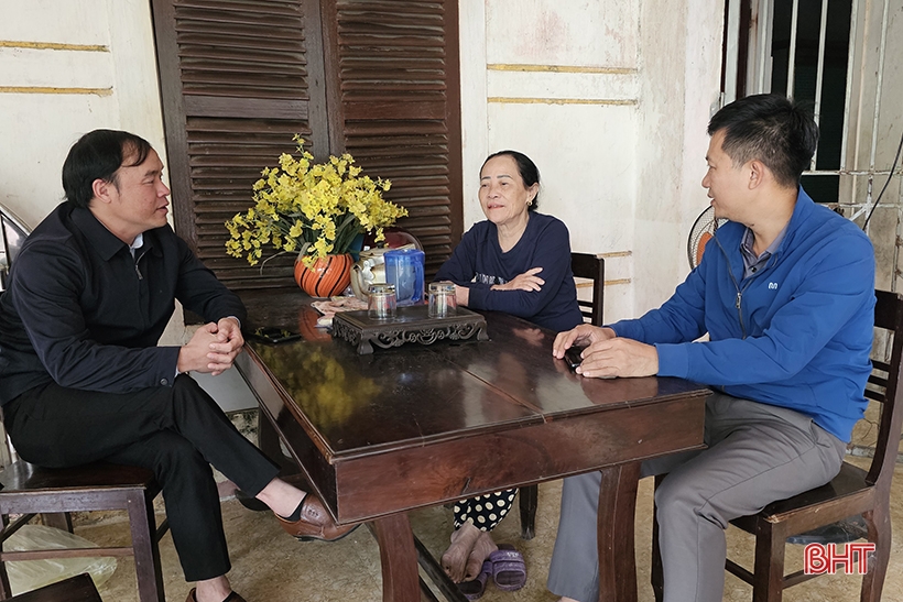 Đảng viên Trần Thị Sử trò chuyện với Phó Chủ tịch UBND xã Cẩm Mỹ Nguyễn Văn Dương và PV Báo Hà Tĩnh.