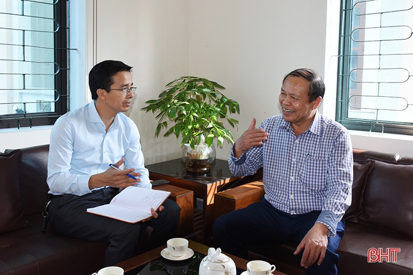 Chủ tịch UBND xã Lưu Vĩnh Sơn (bên phải) kể lại câu chuyện nhiều người dân bất chấp quy định của pháp luật thời điểm triển khai dự án Công viên nghĩa trang Vĩnh Hằng tại xã Bắc Sơn (cũ).