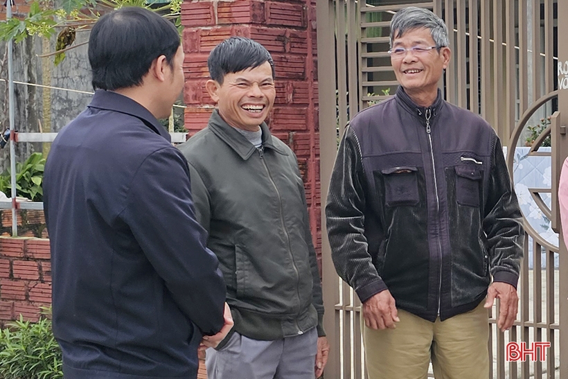 Sau nhiều tháng trời, nụ cười đã trở lại tươi vui trên khuôn mặt Bí thư Chi bộ thôn Mỹ Yên Nguyễn Trọng Hùng (người đứng giữa).