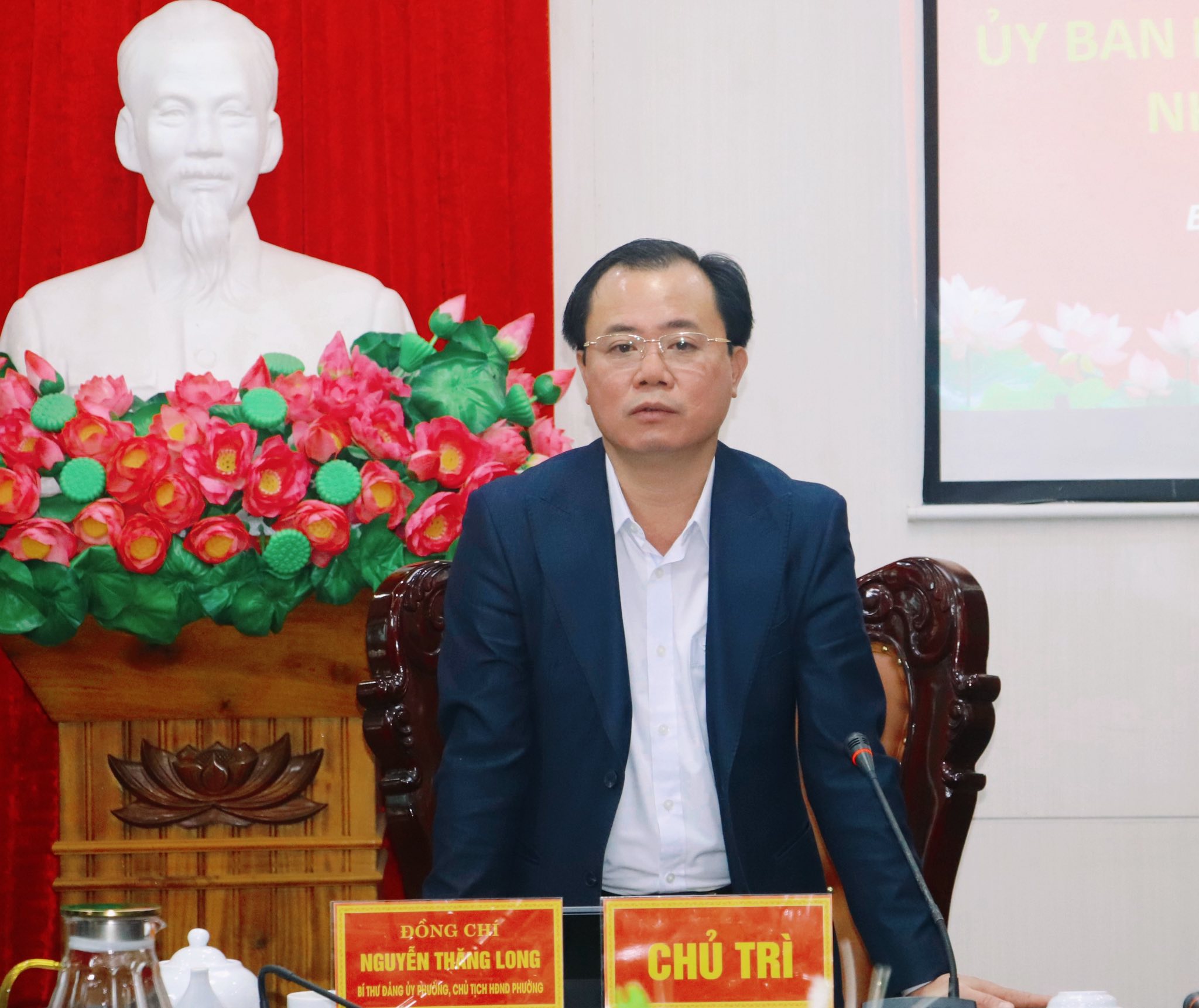 Đồng chí Nguyễn Thăng Long, Bí thư Đảng ủy, Chủ tịch HĐND phường, Chủ tịch UBBC phường chủ trì hội nghị.