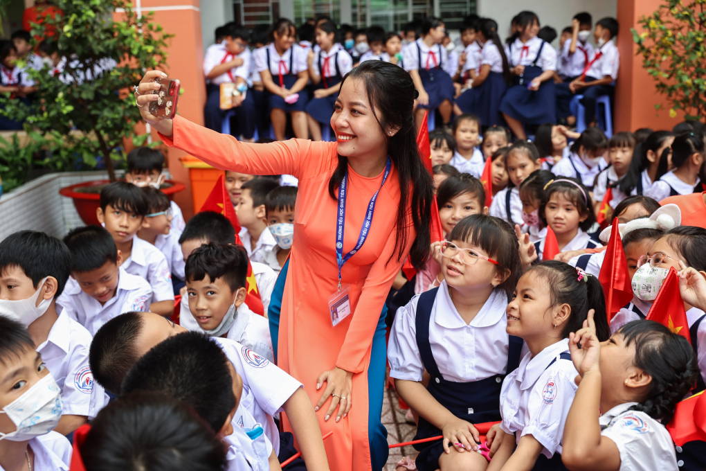 Học sinh và giáo viên trường tiểu học Đinh Tiên Hoàng, TP Thủ Đức, tháng 9/2023. Ảnh: Quỳnh Trần