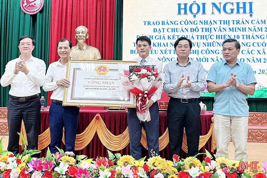 Trao bằng công nhận thị trấn Cẩm Xuyên đạt chuẩn đô thị văn minh năm 2024.