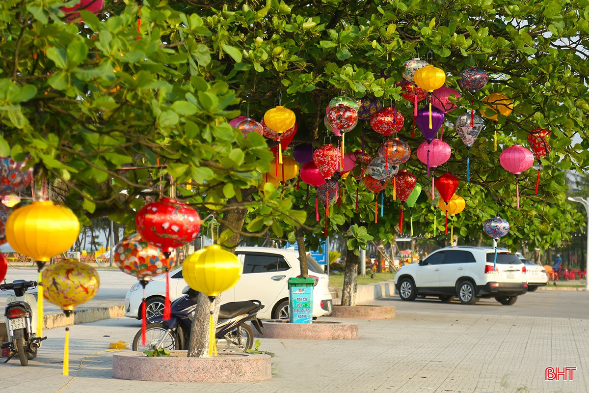 Ở các góc đường, hàng nghìn chiếc đèn lồng được trang trí trên cây xanh đủ sắc màu mang đến một không gian mới lạ.