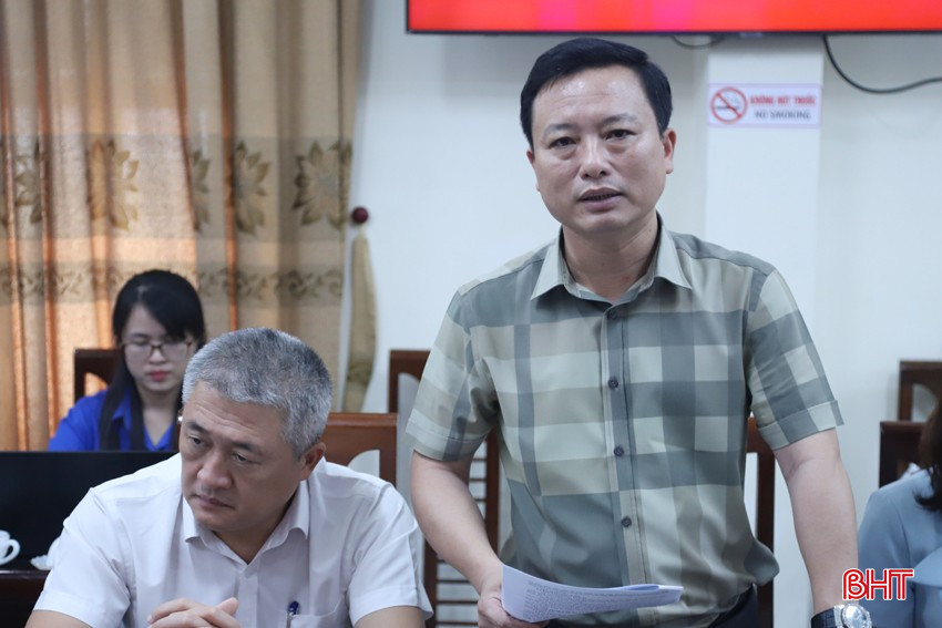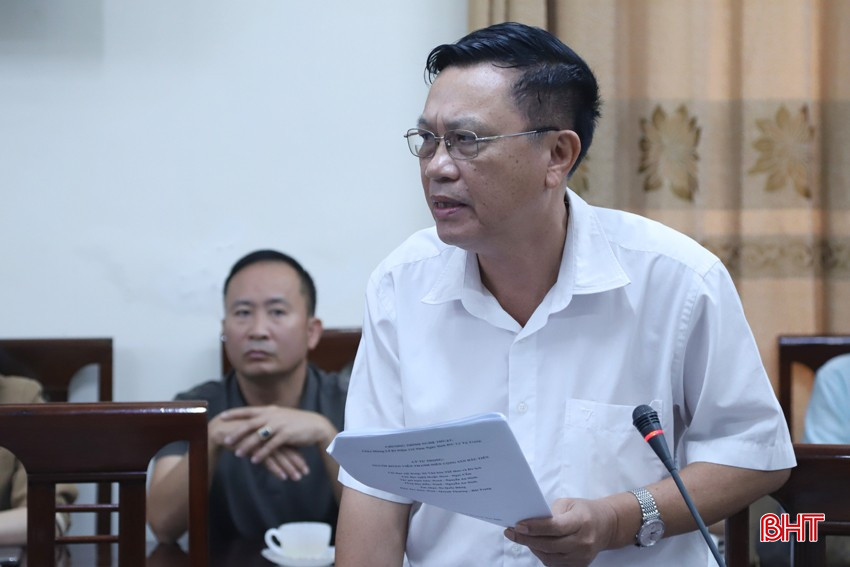 Chủ tịch Ủy ban MTTQ tỉnh Trần Nhật Tân - Phó Trưởng ban Tổ chức các hoạt động kỷ niệm 110 năm Ngày sinh đồng chí Lý Tự Trọng góp ý một số nội dung liên quan đến việc tổ chức hội thảo; công tác lễ tân, khánh tiết...
