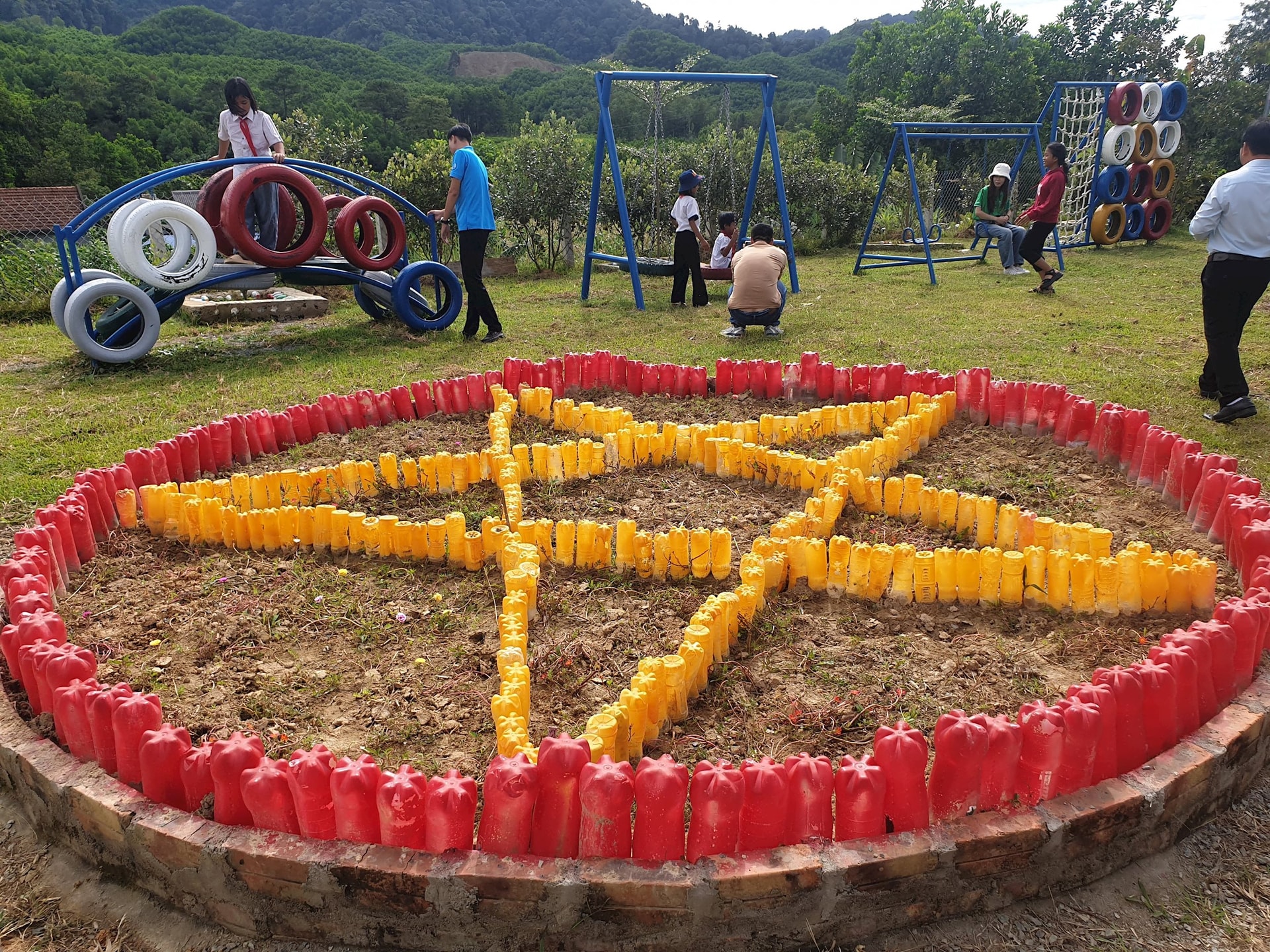 Các em nhỏ vùng cao A Lươi rất thích thú với công viên thân thiện môi trường