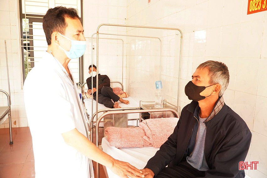Bác sỹ CK1 Đậu Văn Đường - Trưởng khoa Truyền nhiễm, Trung tâm Y tế Cẩm Xuyên hướng dẫn, động viên bệnh nhân yên tâm điều trị.