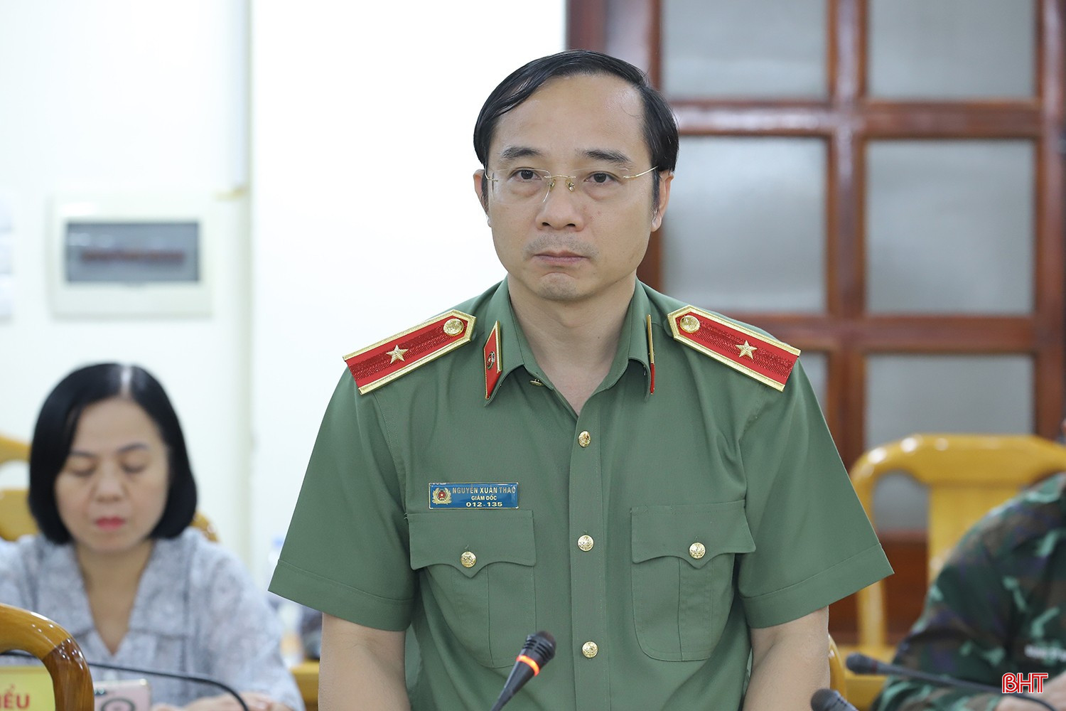 Đại tá Nguyễn Xuân Thắng - Chỉ huy trưởng Bộ CHQS tỉnh và Thiếu tướng Nguyễn Xuân Thao - Giám đốc Công an tỉnh phát biểu tại cuộc họp.