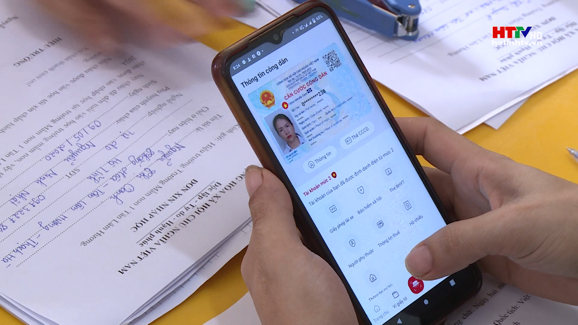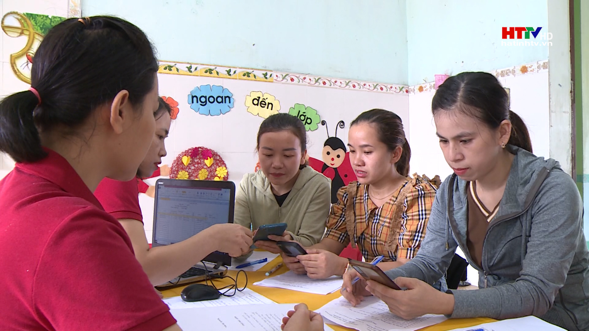 Chị Trần Thị Thúy Hằng, ( người áo đen ảnh trên) ở thôn Bình Dương, xã Thạch Hội, huyện Thạch Hà vừa hoàn tất các hồ sơ đăng ký nhập học cho con tại Trường Mầm non Thạch Hội. Nhờ đã cài đặt định danh điện tử mức độ 2, nên chỉ cần đăng nhập vào phần mềm ứng dụng VneID trên điện thoại thông minh của mình, chị đã cung cấp đầy đủ các dữ liệu thông tin để hoàn thành thủ tục đăng ký tuyển sinh cho con.
