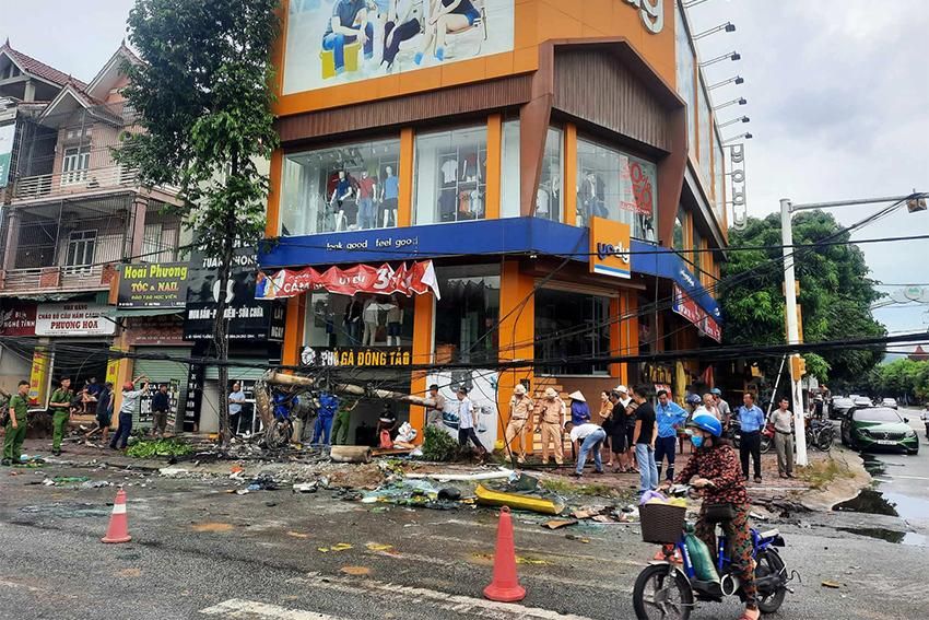 Sau va chạm, cả hai xe đâm đổ cột điện, lao trên vỉa hè đường Trần Phú. Thời điểm xảy ra sự việc, trên xe khách đang có 30 hành khách nhưng may mắn chỉ 1 người bị thương.