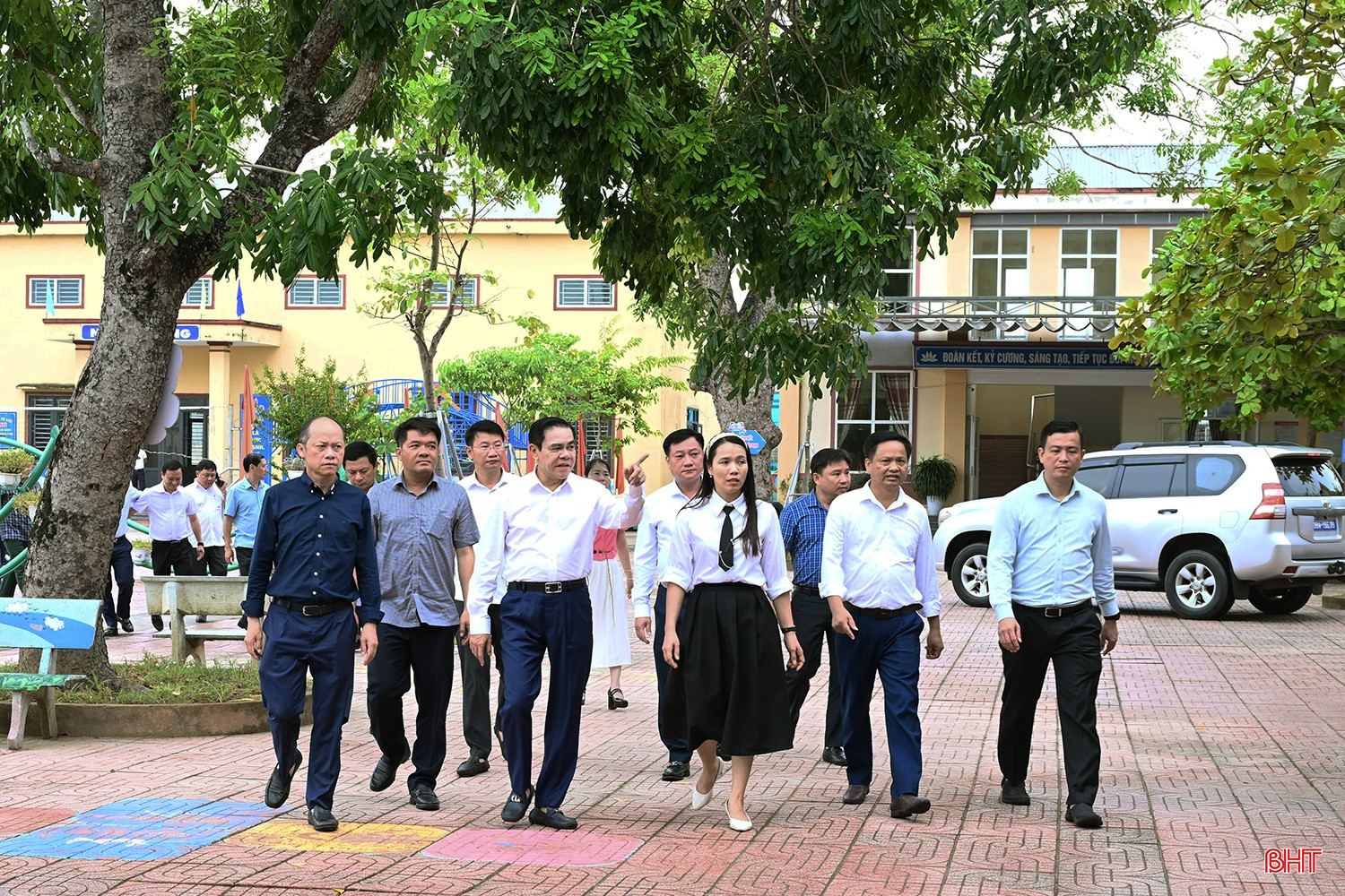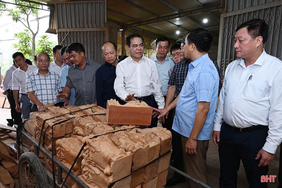 Chủ tịch UBND tỉnh Võ Trọng Hải và đoàn công tác đã đến kiểm tra cơ sở sản xuất mộc Phan Đăng Luận (Cụm công nghiệp Thái Yên, xã Thanh Bình Thịnh); Trường Tiểu học Yên Hồ (xã Yên Hồ - xã NTM kiểu mẫu lĩnh vực nổi trội giáo dục); nhà văn hoá, ngôi nhà trí tuệ thôn Trung Khánh (xã Lâm Trung Thủy - xã kiểu mẫu lĩnh vực nổi trội văn hóa); sân vận động thị trấn Đức Thọ.