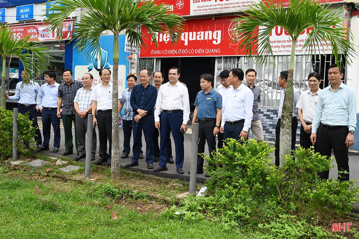 Ngay sau khi kiểm tra thực địa, Chủ tịch UBND tỉnh Võ Trọng Hải và đoàn công tác đã làm việc với huyện Đức Thọ về tiến độ xây dựng NTM và đô thị văn minh.