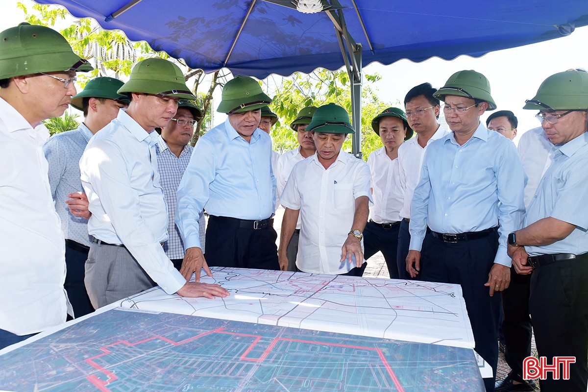 Các đồng chí lãnh đạo tỉnh và đoàn đã đến kiểm tra địa điểm quy hoạch, xây dựng trung tâm hành chính tập trung của tỉnh; kiểm tra Trường THPT Chuyên Hà Tĩnh, Trường THPT Thành Sen, Trung tâm Y tế thành phố và dự án đường Xô Viết Nghệ Tĩnh kéo dài về phía Đông.