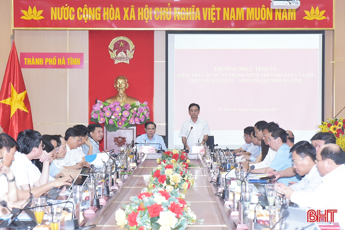 Tại buổi làm việc, lãnh đạo thành phố Hà Tĩnh đề nghị Tỉnh ủy, UBND tỉnh thống nhất chủ trương xây dựng và ban hành nghị quyết của Tỉnh ủy về xây dựng và phát triển thành phố; quan tâm, chỉ đạo đẩy nhanh tiến độ mở rộng địa giới hành chính thành phố và quy hoạch chung đô thị Hà Tĩnh, tỉnh Hà Tĩnh đến năm 2045; triển khai đầu tư, xây dựng các công trình văn hóa trọng điểm, có quy mô tương xứng, tạo điểm nhấn về kiến trúc, văn hóa.