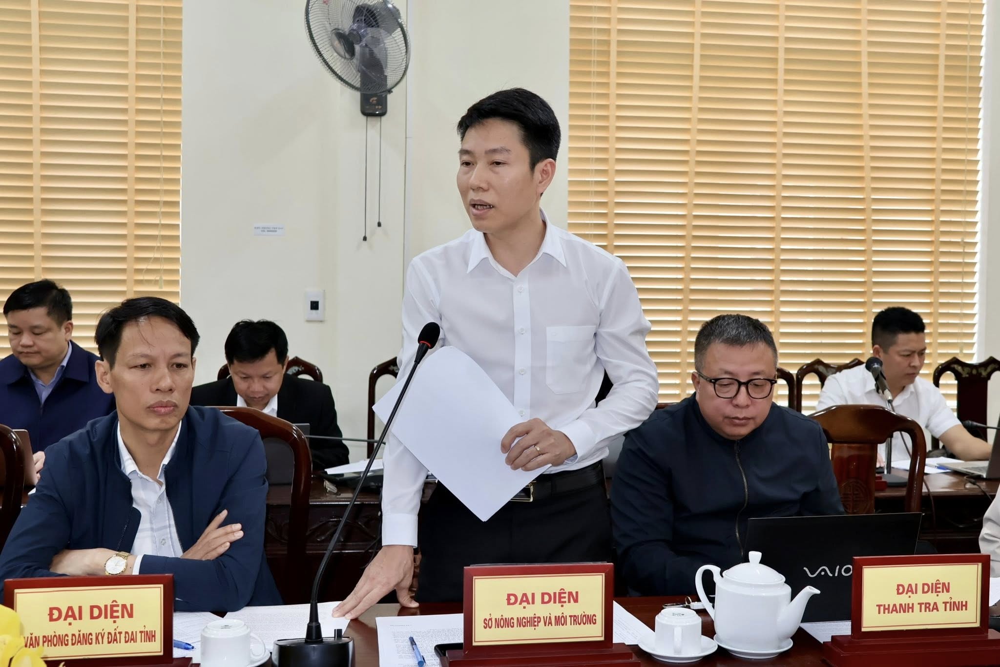 Phó Giám đốc Sở Nông nghiệp và Môi trường Trương Văn Cường báo cáo kết quả giải quyết một số vụ việc được Chủ tịch UBND tỉnh giao.
