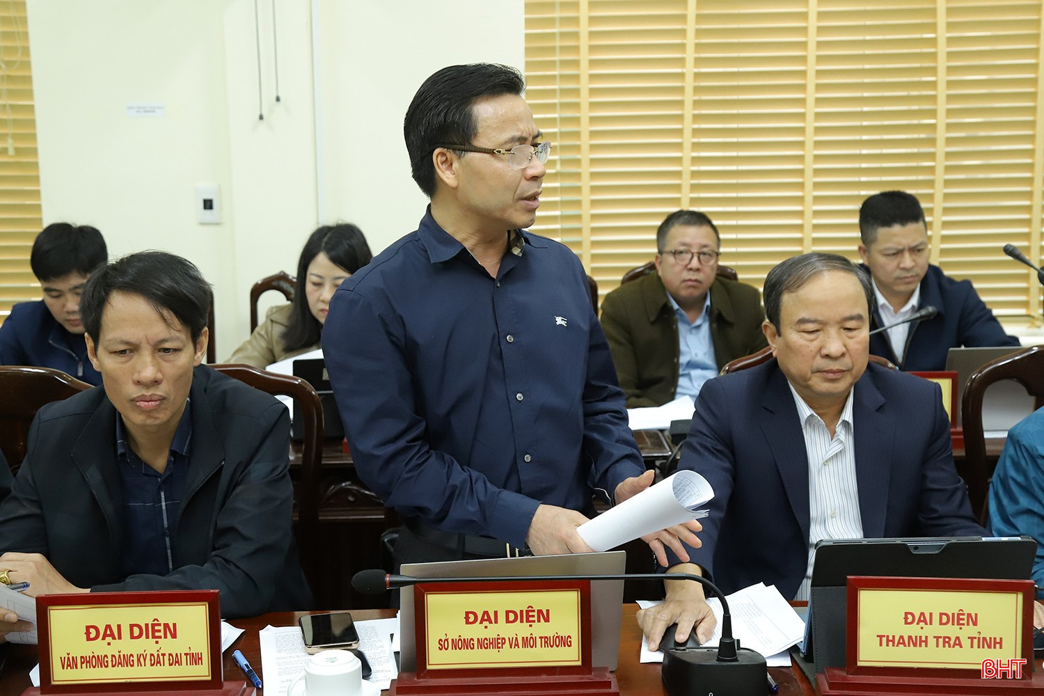 Giám đốc Sở NN&MT Lê Ngọc Huấn báo cáo về quá trình giải quyết một số nội dung liên quan tới lĩnh vực phụ trách được lãnh đạo tỉnh giao xử lý.
