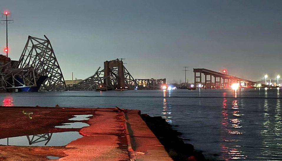 Cầu Francis Scott Key sập một phần sau vụ va chạm ngày 26/3. Ảnh: Reuters
