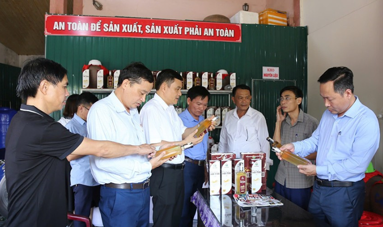 Lãnh đạo huyện Thạch Hà và các đơn vị liên quan kiểm tra thực tế sản phẩm Rượu nếp cái Hà Mai.