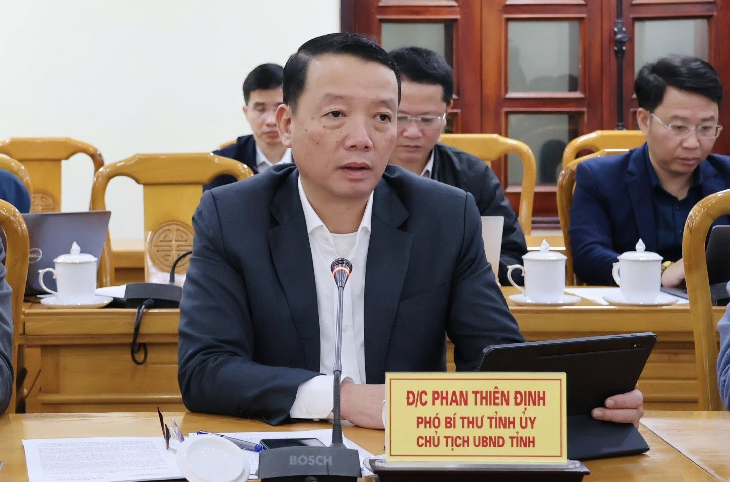Chủ tịch UBND tỉnh Phan Thiên Định phát biểu kết luận buổi làm việc.