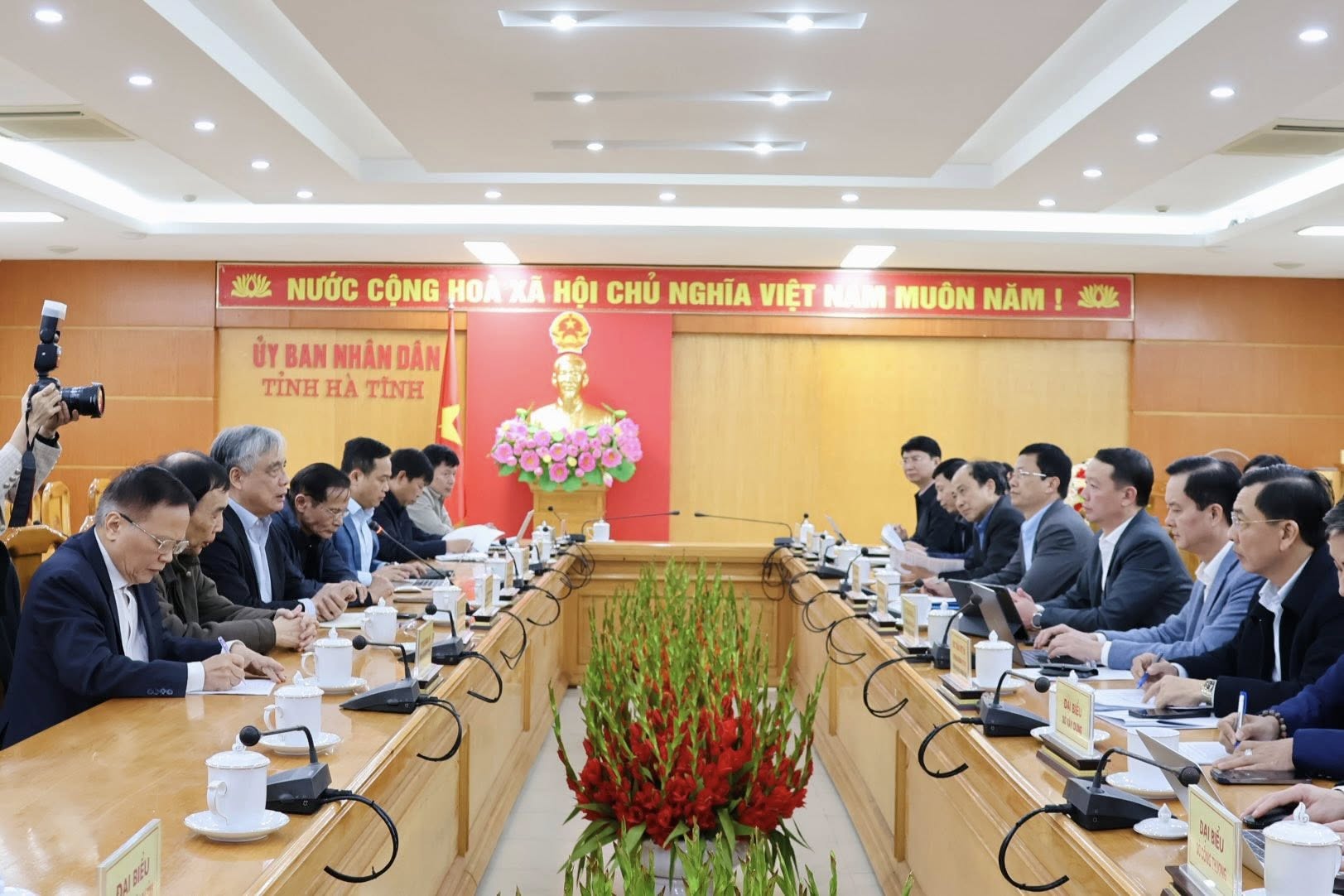 Chiều 9/1, Chủ tịch UBND tỉnh Phan Thiên Định và Phó Chủ tịch Thường trực UBND tỉnh Trần Báu Hà có buổi làm việc đoàn các chuyên gia, nhà khoa học về lập báo cáo, hồ sơ đề xuất phê duyệt chủ trương xây dựng Đề án Khu thương mại tự do Vũng Áng. Cùng dự có các đồng chí Ủy viên BTV Tỉnh ủy: Nguyễn Trọng Hiếu - Giám đốc Sở Tài chính, Trần Việt Hà - Trưởng ban Quản lý Khu kinh tế tỉnh; lãnh đạo các sở, ban, ngành. Đoàn chuyên gia do PGS.TS Trần Đình Thiên - nguyên Viện trưởng Viện Kinh tế Việt Nam, Thành viên Hội đồng Tư vấn chính sách Tiền tệ quốc gia, Thành viên Hội đồng Tư vấn chính sách của Thủ tướng Chính phủ làm trưởng đoàn.