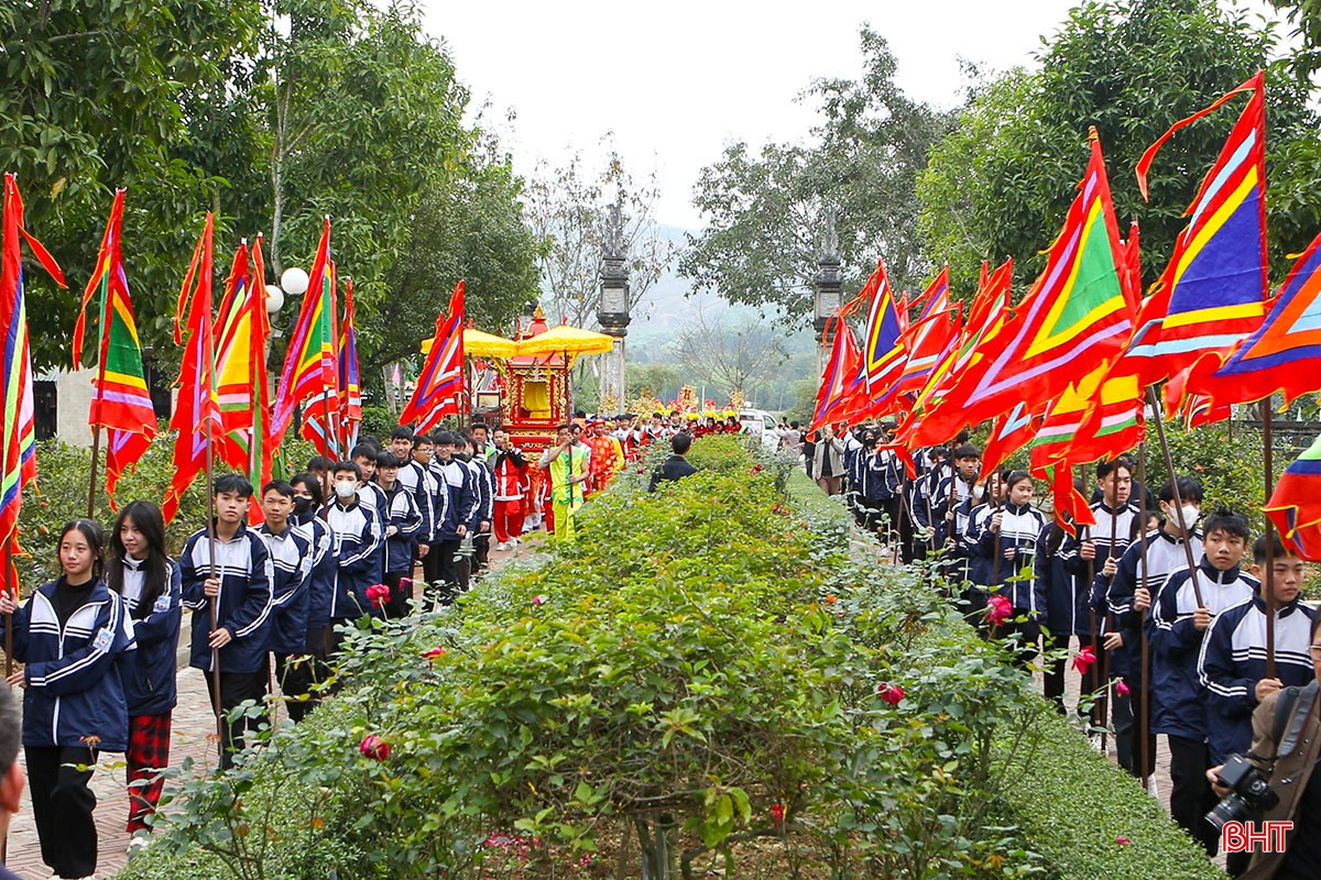 Hàng trăm người dân tham gia lễ rước bài vị Hải Thượng Lãn Ông Lê Hữu Trác.