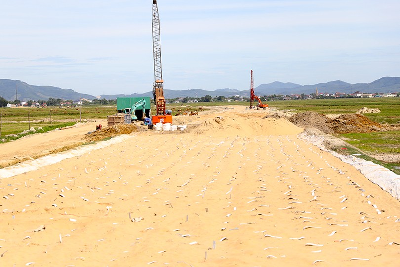 Dự án Đường trục dọc khu đô thị trung tâm thị xã Kỳ Anh đang được đẩy nhanh thi công.