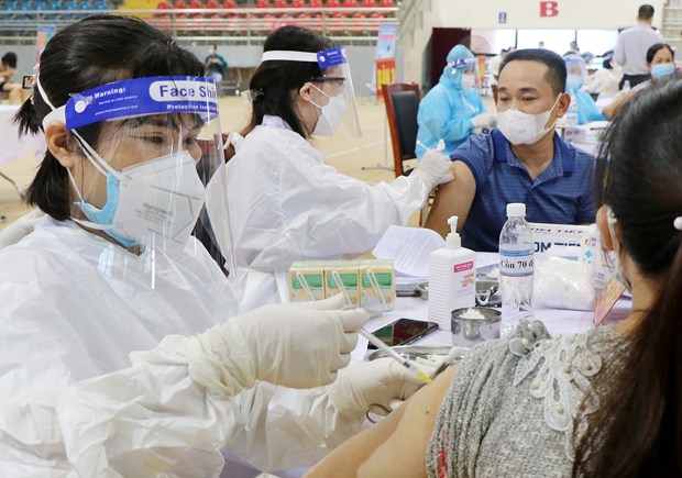 Nhân viên y tế tiêm chủng vaccine cho người dân. (Ảnh: Trung Kiên/TTXVN)