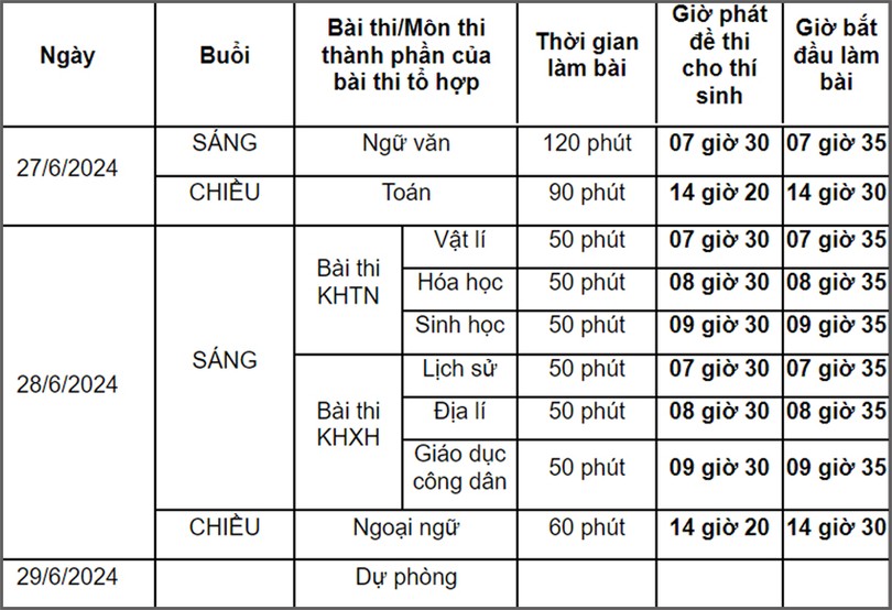Buổi sáng các thí sinh làm bài thi môn Ngữ văn và buổi chiều làm bài thi môn Toán.