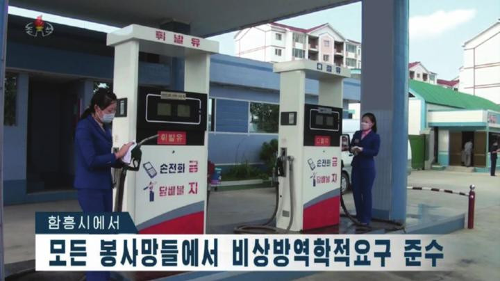 Một cây xăng hỗ trợ thanh toán trực tuyến qua điện thoại ở Hamhung.
