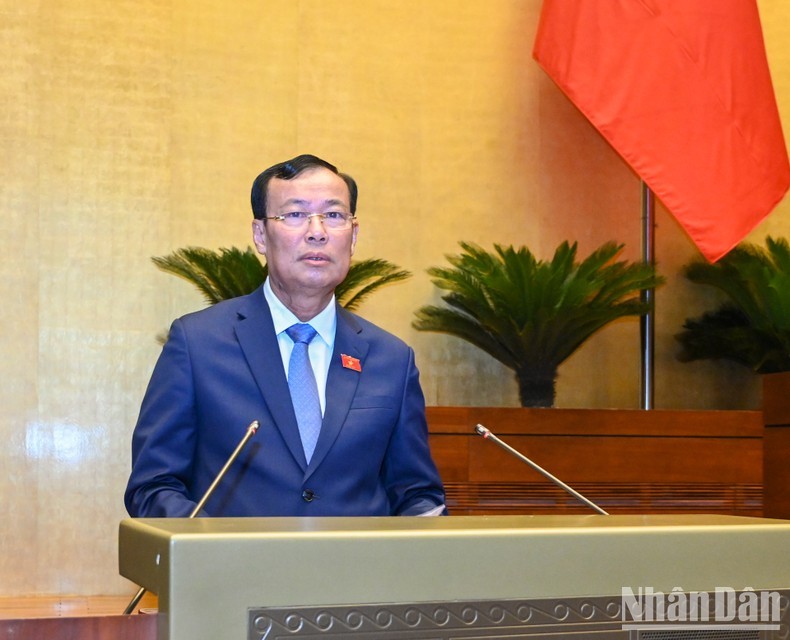 Chủ nhiệm Ủy ban Quốc phòng và An ninh của Quốc hội Lê Tấn Tới thông tin về dự thảo Luật tại phiên làm việc chiều 22/5. (Ảnh: DUY LINH)