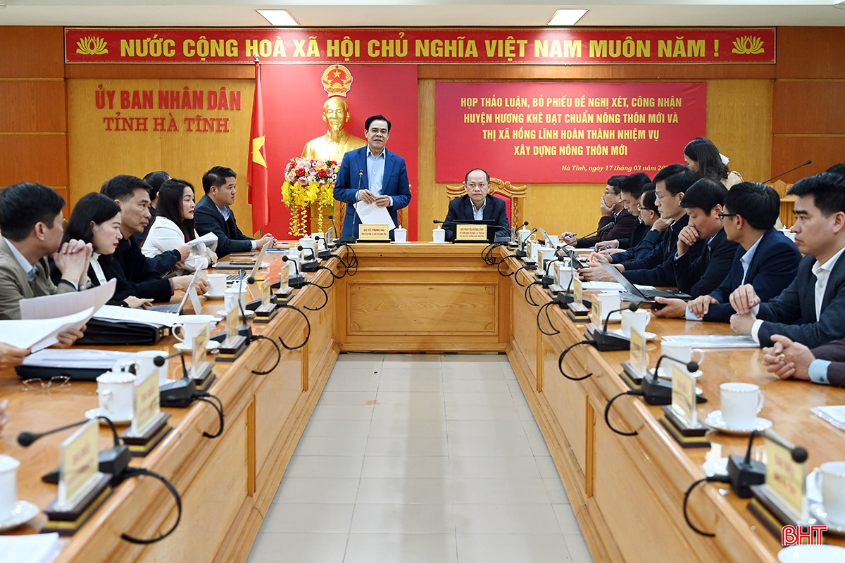 Chiều 17/3, Chủ tịch UBND tỉnh Võ Trọng Hải, Phó Chủ tịch Thường trực UBND tỉnh Nguyễn Hồng Lĩnh chủ trì cuộc họp thảo luận, bỏ phiếu đề nghị xét, công nhận huyện Hương Khê đạt chuẩn NTM, TX Hồng Lĩnh hoàn thành nhiệm vụ xây dựng NTM.