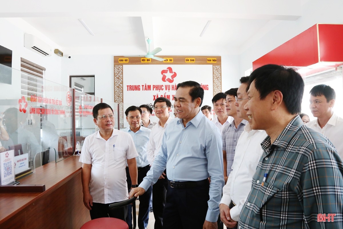 Chủ tịch UBND tỉnh Võ Trọng Hải cùng các thành viên trong đoàn công tác đã đến kiểm tra thực tế tại các trung tâm phục vụ hành chính công 2 xã Cẩm Xuyên, Can Lộc mới. Theo báo cáo, đến nay, hai địa phương cơ bản hoàn thiện các điều kiện về cơ sở vật chất, bố trí, sắp xếp nơi làm việc cho đội ngũ cán bộ, công chức. Các trang thiết bị, hệ thống kỹ thuật và nhân sự cơ bản đáp ứng nhu cầu trong quá trình vận hành thử nghiệm theo kế hoạch của tỉnh. Công tác chuẩn bị các nội dung cho kỳ họp thứ nhất HĐND cấp xã mới cơ bản hoàn tất.