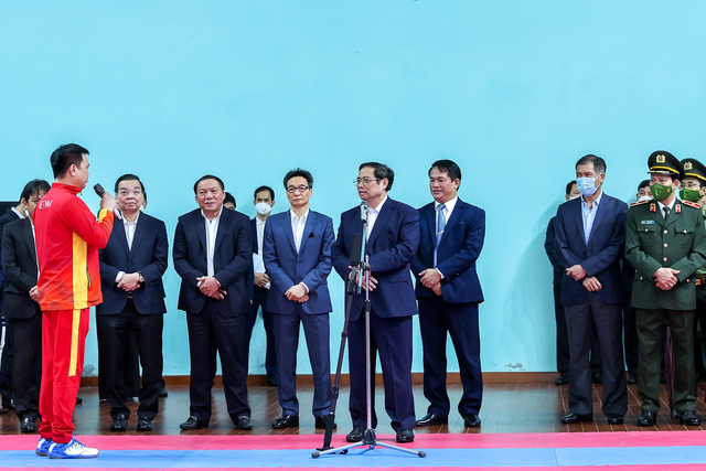 Thay mặt lãnh đạo Đảng, Nhà nước, Thủ tướng Phạm Minh Chính ghi nhận các cơ quan chức năng đã quan tâm, tạo điều kiện cho các đội tuyển tập luyện nghiêm túc với cố gắng cao nhất, trong điều kiện còn có những khó khăn, nhất là trong bối cảnh dịch bệnh COVID-19 có những diễn biến phức tạp vừa qua.