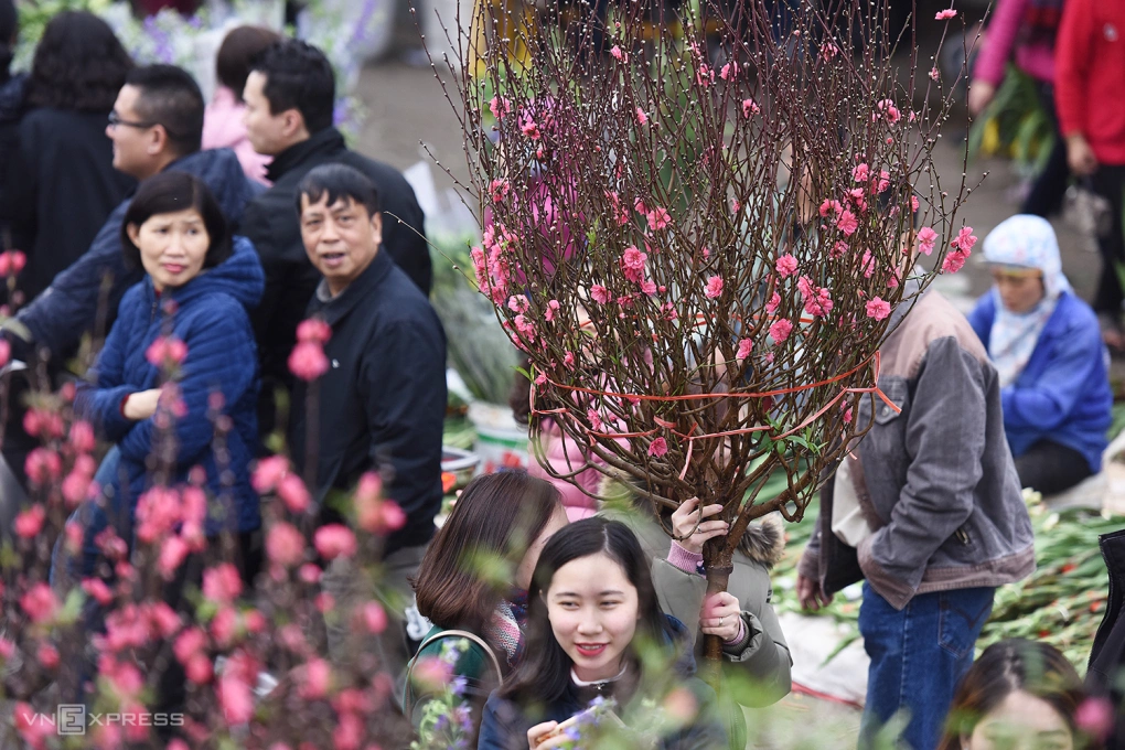 Người Hà Nội sắm hoa Tết ở chợ Quảng Bá. Ảnh: Giang Huy