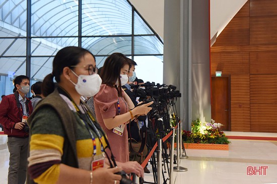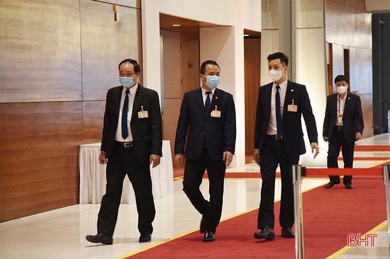 Sáng nay, công tác phòng chống dịch Covid-19 tại Trung tâm Hội nghị quốc gia cũng được siết chặt, nghiêm ngặt hơn. Các đại biểu, nhân viên phục vụ, phóng viên tác nghiệp... tại trung tâm đều được yêu cầu và được phát khẩu trang để đeo ngay từ ngoài cổng kiểm soát.