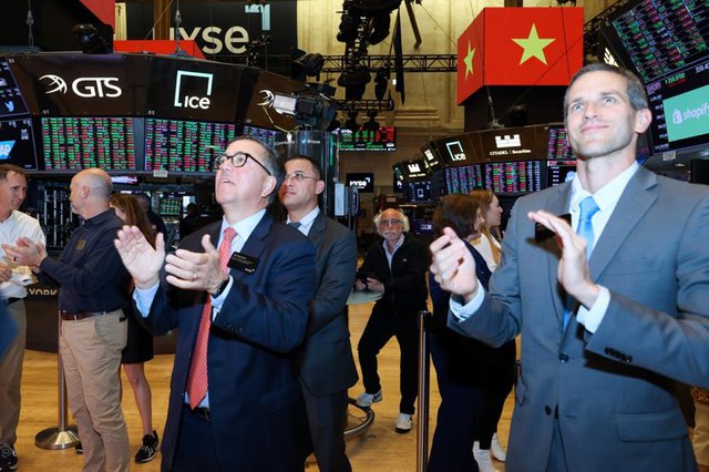 Sàn giao dịch chứng khoán New York chào đón Thủ tướng Phạm Minh Chính và đoàn đại biểu Việt Nam - Ảnh: VGP/Nhật Bắc
