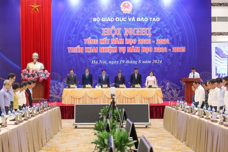 Các đại biểu dành phút mặc niệm tưởng nhớ Tổng Bí thư Nguyễn Phú Trọng - Ảnh: VGP/Nhật BắcThủ tướng yêu cầu tổ chức thực hiện hiệu quả phương châm: "Lấy học sinh, si