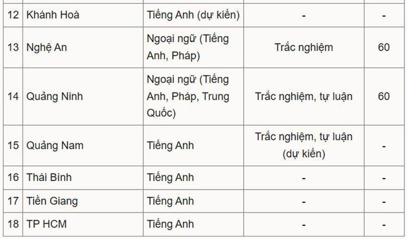 Đến 7/2, khoảng 20 địa phương đã công bố môn thứ ba thi lớp 10, tất cả đều chọn Tiếng Anh hoặc Ngoại ngữ (gồm Tiếng Anh và một số ngoại ngữ khác). Riêng Hà Nội hôm qua cho biết sẽ công bố môn thi thứ ba vào cuối tháng 3 như mọi năm.