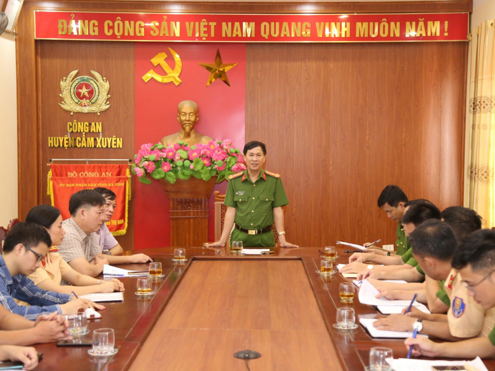Phát biểu chỉ đạo tại cuộc họp Đại tá Đặng Hoài Sơn – Phó Giám đốc Công an tỉnh, Phó ban ATGT tỉnh chỉ đạo Công an huyện Cẩm Xuyên phối hợp với các đơn vị có liên quan khẩn trương điều tra, làm rõ nguyên nhân vụ tai nạn, xử lý nghiêm theo đúng quy định của pháp luật đối với tổ chức, cá nhân gây ra vụ TNGT đặc biệt nghiêm trọng nêu trên.