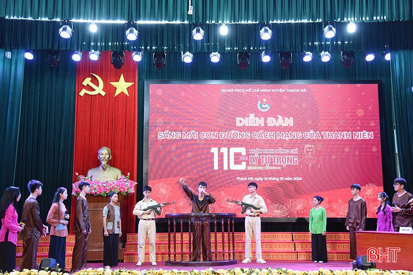 Màn sân khấu hóa kể về cuộc đời và sự nghiệp cách mạng của đồng chí Lý Tự Trọng do học sinh Trường THPT Lý Tự Trọng (Thạch Hà) thực hiện.