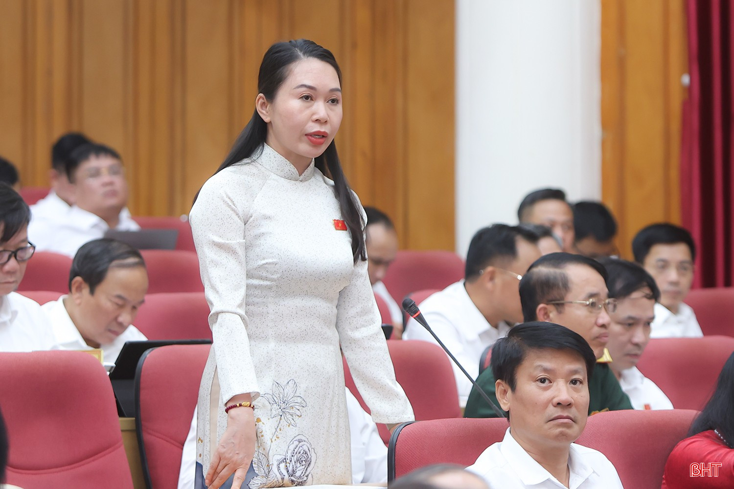 Đại biểu Trần Thị Hoa - Phó Chủ tịch Thường trực HĐND xã Đồng Tiến yêu cầu Sở GD&ĐT làm rõ việc phân cấp, điều động, đề bạt, bổ nhiệm giáo viên sau khi bỏ cấp huyện?